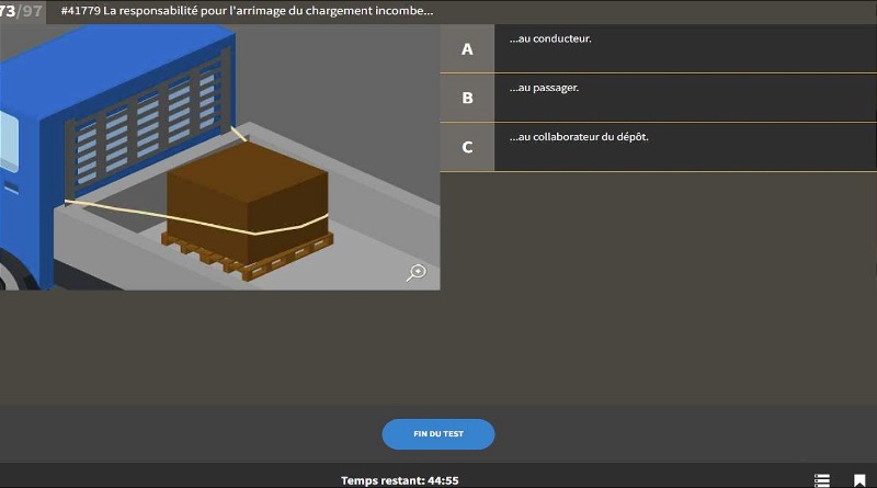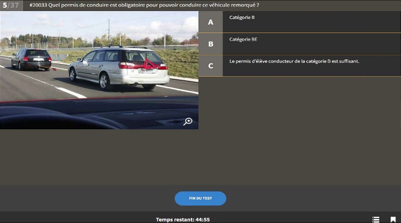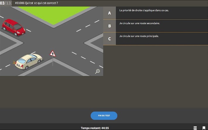 Si vous êtes sûr de vous, vous pouvez simuler un examen théorique du permis de conduire, comme si vous étiez à l’examen final. 50 questions seront choisies de façon aléatoire auxquelles vous devrez répondre en 45 mn. Lorsque vous réussissez à plusieurs reprises ce test, vous êtes prêt à passer l’examen théorique du permis de conduire du permis de conduire officiel .